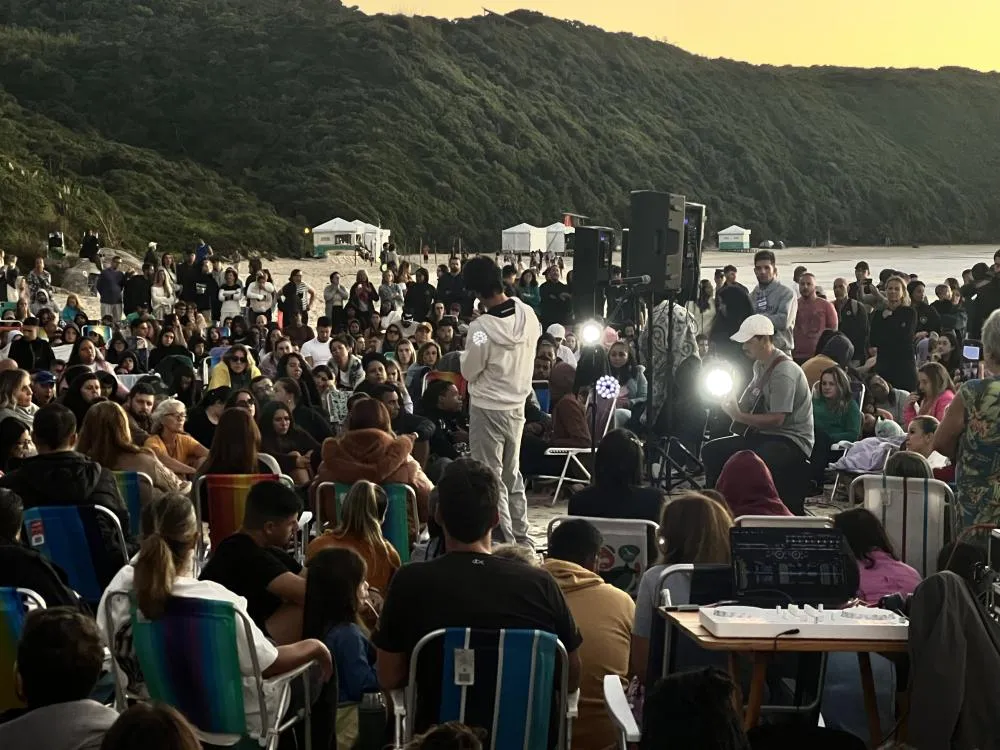 Com início por volta das 5h30, a programação contou com momentos de evangelismo, louvor, ministração da palavra e atividades físicas na areia, proporcionando uma experiência diferenciada aos participantes, que puderam acompanhar o amanhecer em um cenário natural considerado um dos mais belos do litoral catarinense.