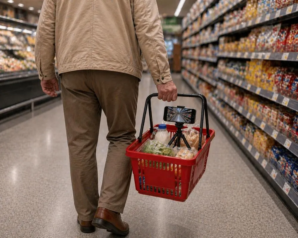 Supermercado Idoso tarado no supermercado coloca celular em cestinha para filmar mulheres em Criciúma.